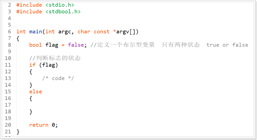 在C99标准可以使用布尔型来表示真假两种情况,头文件stdbool.h有相关描述,在头文件中定义了三个宏,分别是bool、true以及false