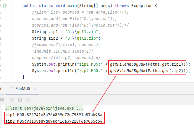 - System.out.println("zip2 MD5:" + getFileMd5ByJdk(path2));