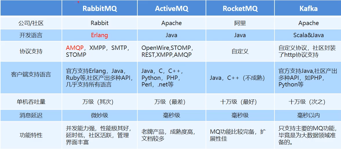 2007年,Rabbit技术公司基于AMQP标准开发的RabbitMQ 1.0发布。RabbitMQ采用Erlang语言开发。Erlang语言由Ericson设计,专门为开发高并发和分布式系统的一种语言,在电信领域使用广泛。