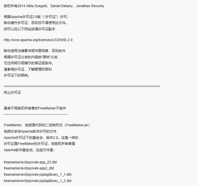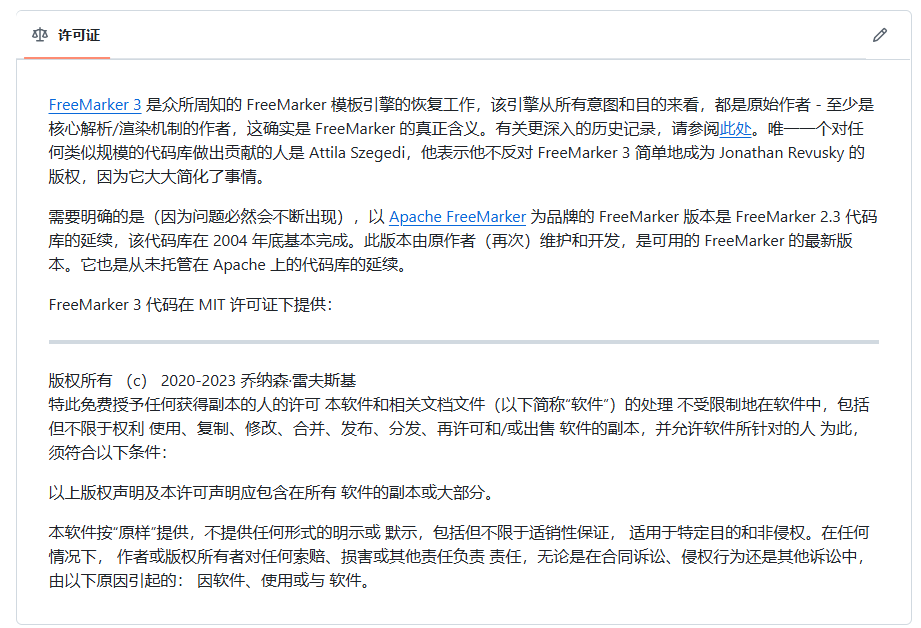 • https://github.com/freemarker/freemarker3?tab=License-1-ov-file#readme : 基于 MIT 协议