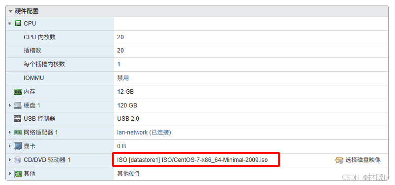 CD/DVD 源选择CentOS7的 ISO 镜像
