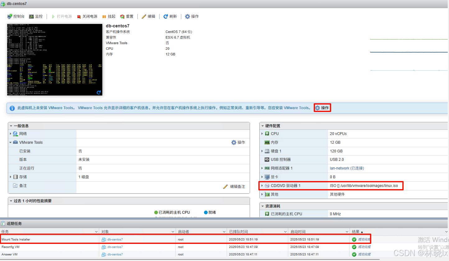 等待安装结束,从菜单中选择安装VMware Tools,此时