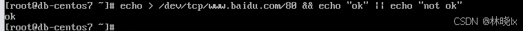 以访问百度为例,运行以下命令:- echo > /dev/tcp/www.baidu.com/80 && echo "ok" || echo "not ok"