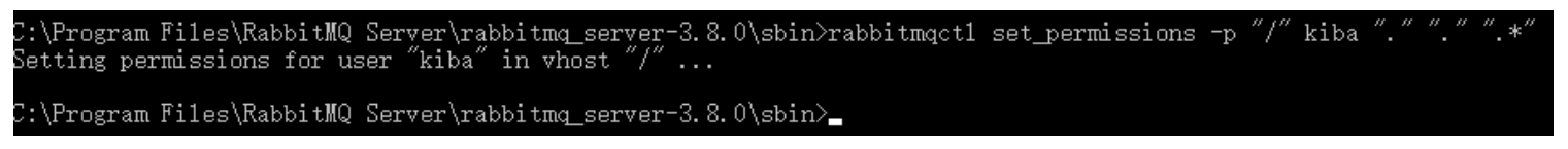 rabbitmqctl set_permissions -p "/" kiba "." "." ".*"