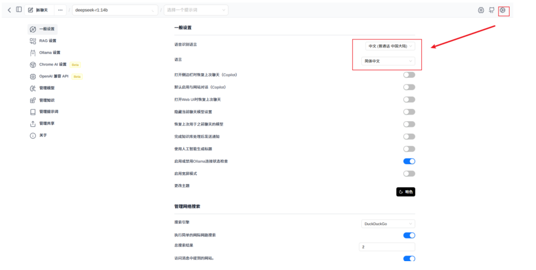 安装后打开插件,把语音识别、界面语音修改为中文,方便我们使用。