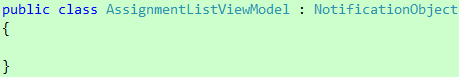 首先,切换到Visual Studio,在ViewModels文件夹里创建一个AssignmentListViewModel类,并让它继承NotificationObject类: