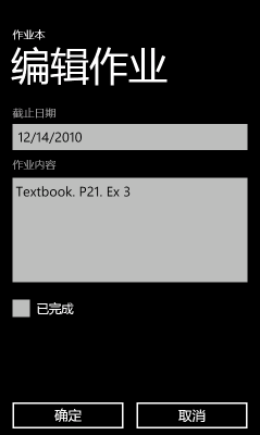 看到这里,你可能会说,作业的状态应该不止"已完成"和"未完成"两种啊,比如说,当老师刚把作业布置下来时,它应该是"未开始";当我们开始做某项作业时,它应该是"进行中";有时候准备工作还没好,我们不得不把作业推迟,此时它应该是"已推迟";有时候老师可能大发慈悲说某些作业不用做了,此时它应该是"已取消",等等等等。照这样说,我们是否也该考虑把现在的两个日期细化为"计划开始日期"、"计划结束日期"、"实际开始日期"和"实际结束日期",然后加上一个"作业进度"什么的?千万不要这样,没有学生愿意采用这么细致的作业管理方案,再说这样做也会分散他们的注意、加重他们的负担,作业本的主要目的只有一个,就是让学生对要做哪些作业一目了然,所有功能的设计都应该围绕这点展开,所有功能的取舍也应该以此为标准。