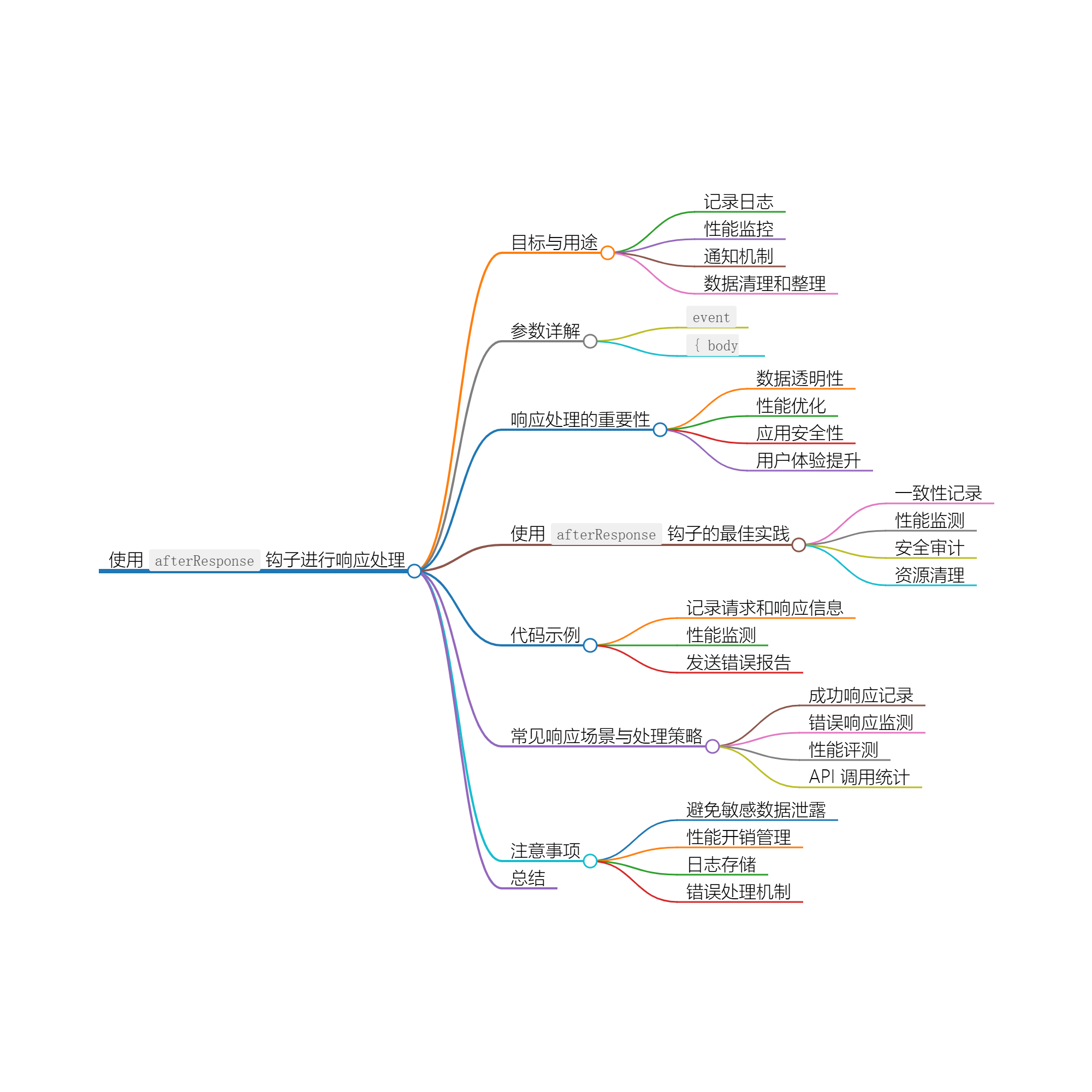 在 Web 应用程序中,响应的后续处理是提升用户体验,进行数据分析和监控的重要组成部分https://www.cnblogs.com/。Nuxt.js 提供的 afterResponse 钩子允许开发者在发送响应之后实施自定义操作,这一机制有助于进行任务如记录日志、监控性能等https://www.cnblogs.com/。