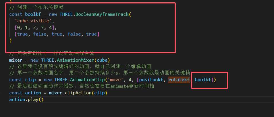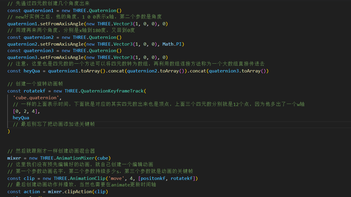 主要就是旋转动画,刚才是位移动画,旋转动画就要用到QuaternionKeyframeTrack
