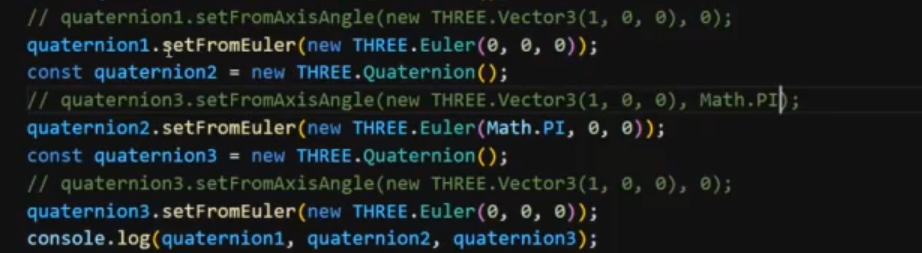 除此之外,四元数还支持欧拉角的方式来设置角度,三个参数分别表示x轴角度y轴z轴