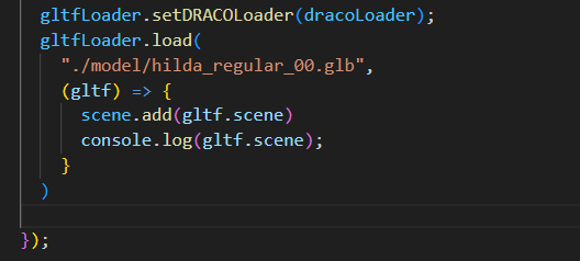 注意要找到模型的材质,可以一直往这个gltf.scene的children下面找,找到最后一级会有mesh此时就带有材质