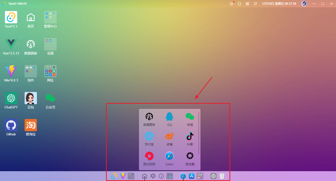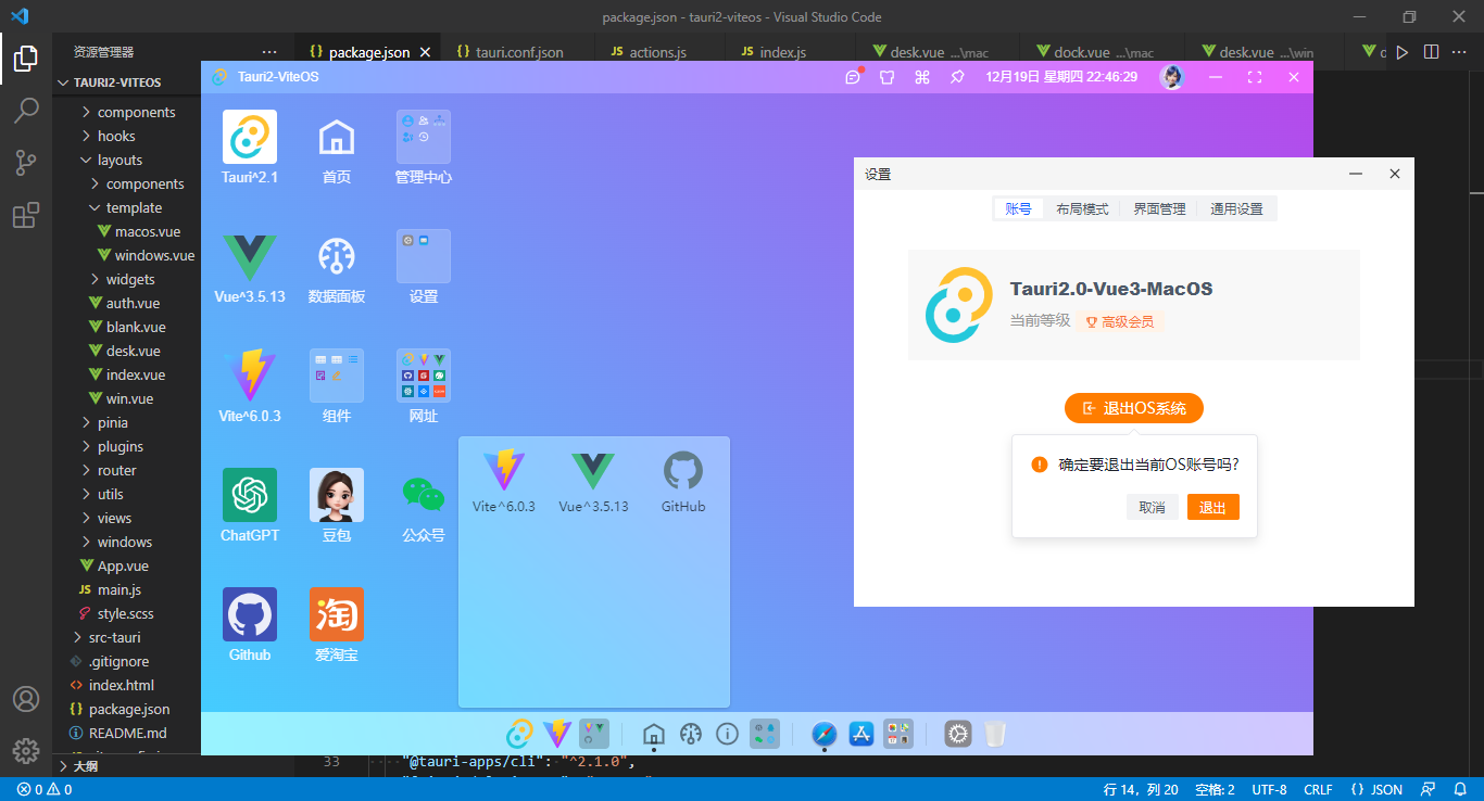 vue3-tauri2-os原创跨平台Tauri2.0+Vite6+Pinia2+Arco-Design+Echarts+sortablejs桌面端OS管理平台系统。提供macos和windows两种桌面风格模式、自研拖拽式栅格引擎、封装tauri2多窗口管理、自定义json配置桌面/Dock菜单。