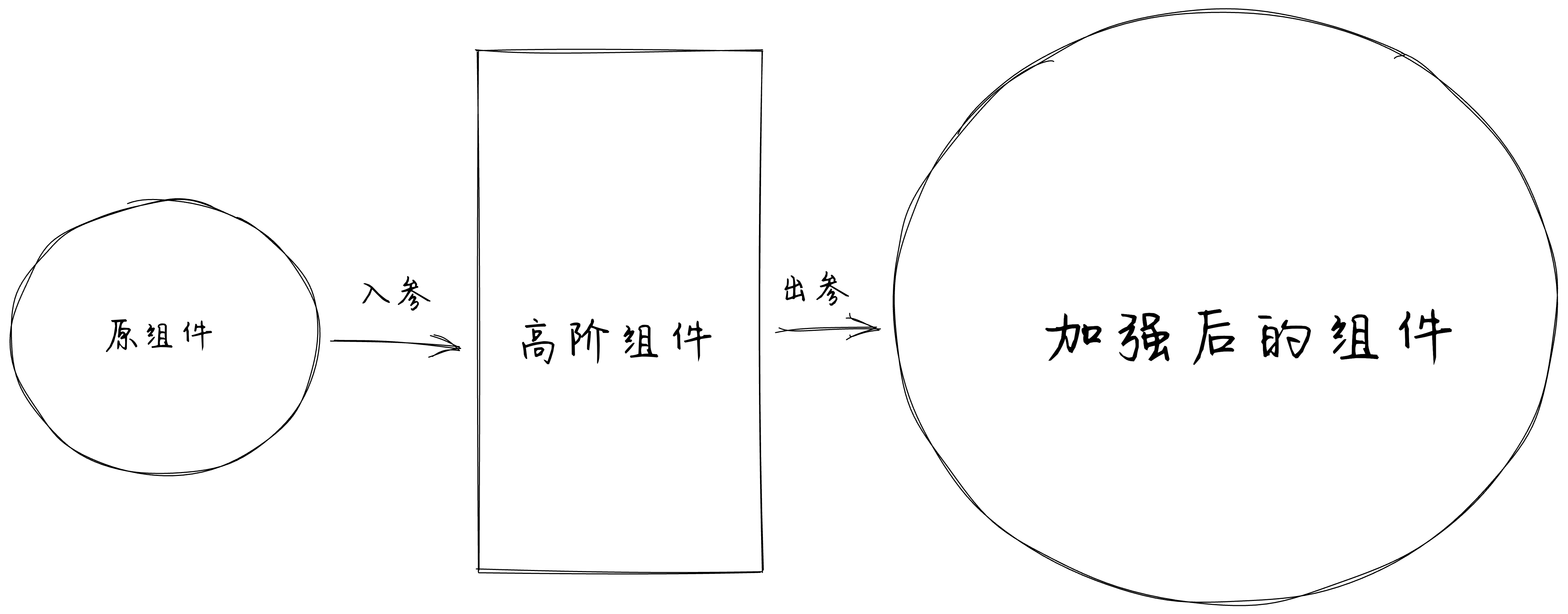 HOC实际就是一个函数,这个函数接收的参数就是一个组件,并且返回一个组件,返回的就是加强后组件。如下图: