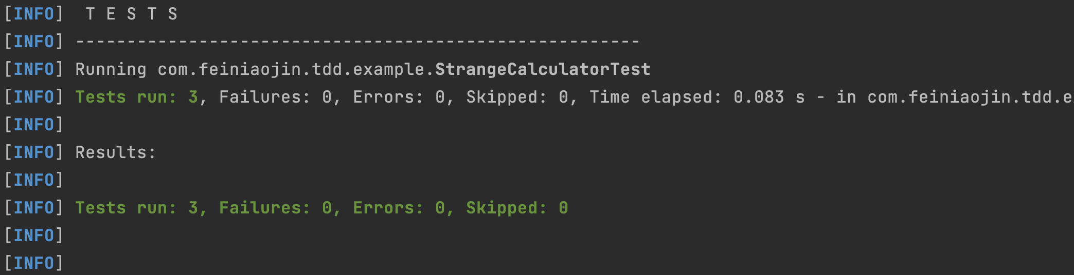 继续实现givenEquals0用例对应的逻辑:- public class StrangeCalculator {
