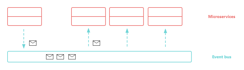 另一种消息类型是事件,它表示发生了某件事。这有点像语法中的过去式,当事件发布时,系统中任何对此事件“感兴趣”并订阅了该事件的微服务都可以响应并执行它们各自定义的操作。在面向对象编程中,这一模式被称为“发布-订阅”模式,例如C#中的事件处理机制就是采用的这种模式。在eShopOnContainers中,提交订单的过程就存在OrderPlaced事件,该事件会执行多个不同的操作,如支付、发送电子邮件、检查商品库存等。这里每个需要响应该事件的微服务都从发布到事件总线上的消息触发对应的操作。