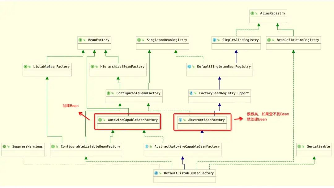 再比如在Spring中,允许用户配置自定义的编辑器、BeanPostProcessor处理器,也是由一个单独的接口类ConfigurableBeanFactory表达的。