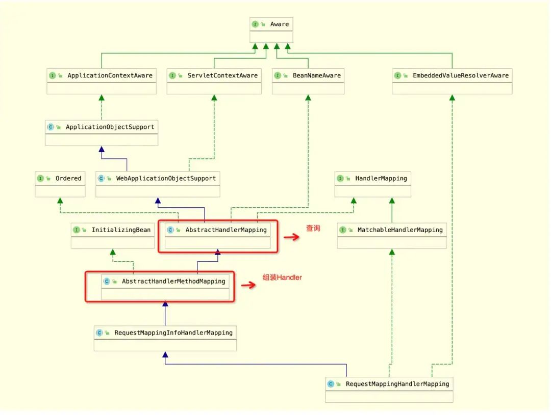 复制代码 RequestMappingHandlerMapping类结构继承关系如下图所示。