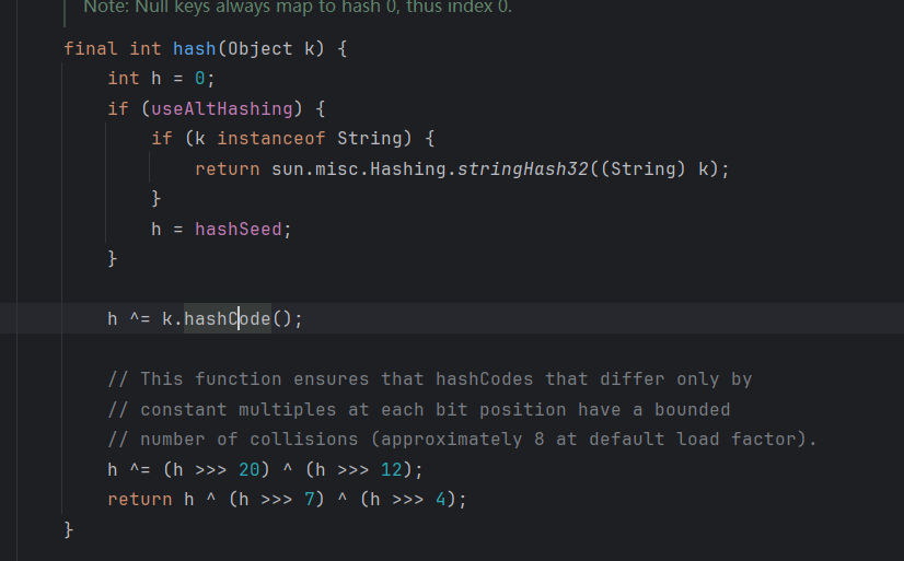 但我们知道0异或任何数,是任何数,取key.hashcode=0时
