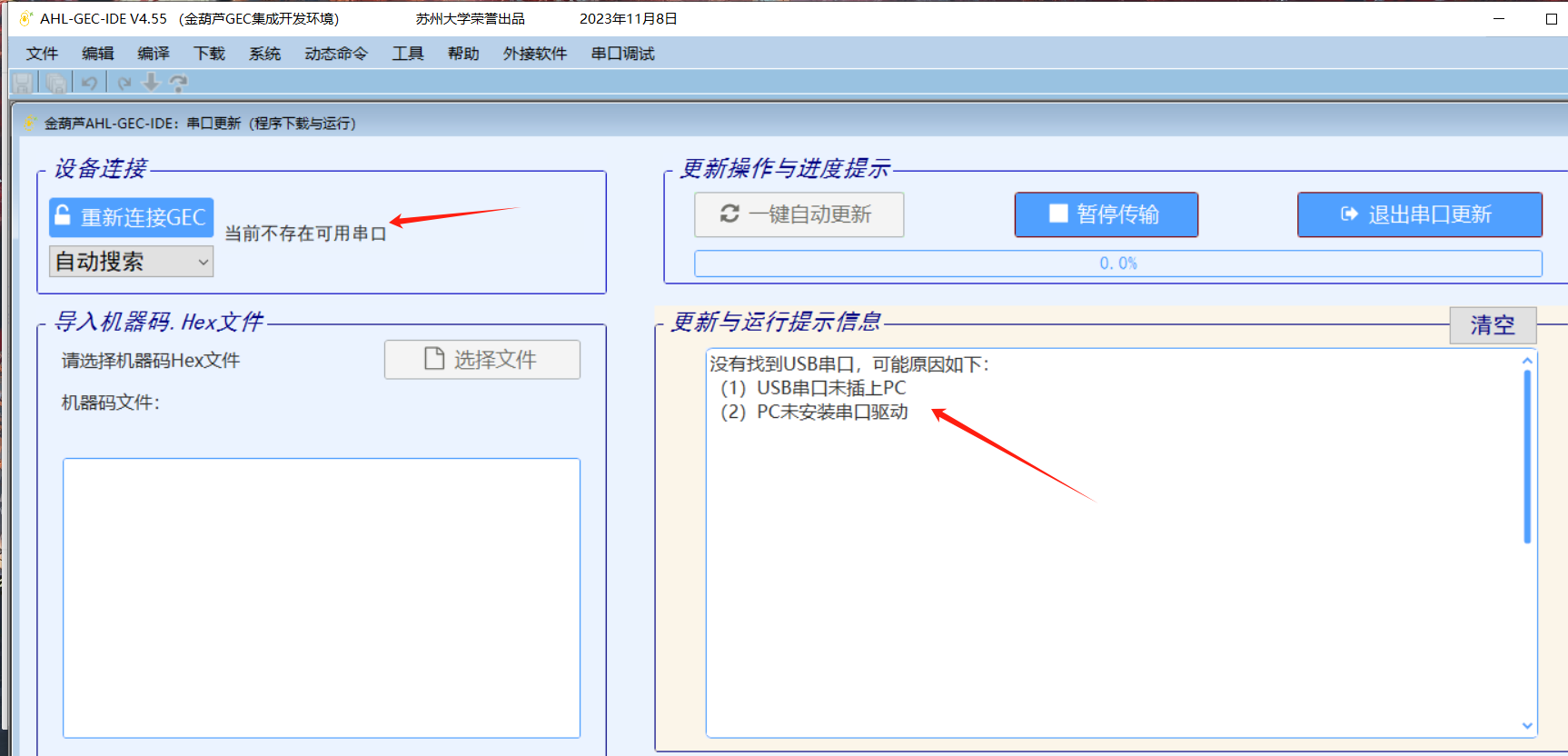 问题一:出现这种情况是因为你没有插开发板,它没有检测到开发板