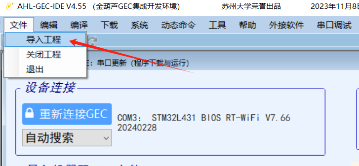 点击下载——>串口更新,进入下一个界面