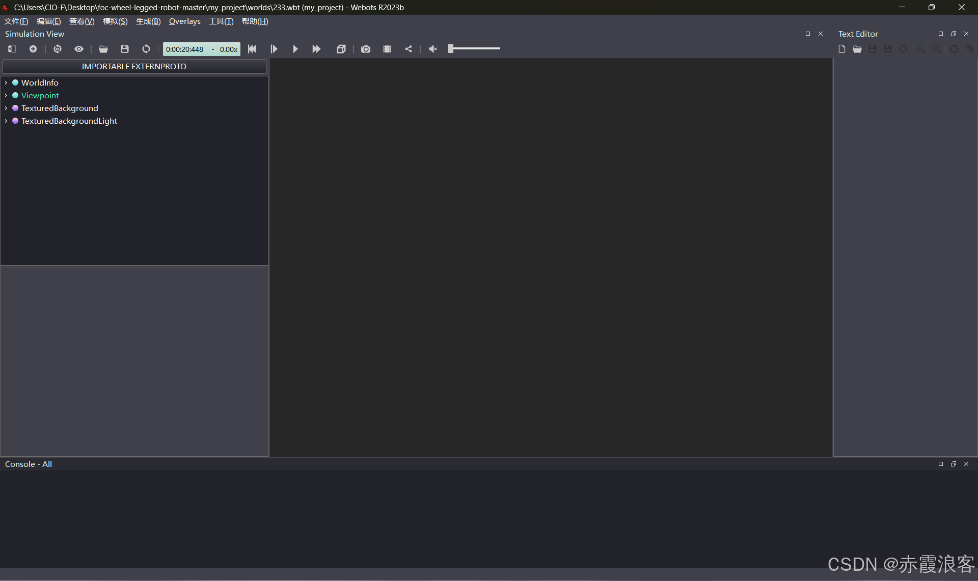 不得不说,webots界面还算友好,就是这三维窗口用的我是真难受,和常用的建模软件solidworks操作方式不能说是完全一样吧,也可以说是完全相反,滚轮的灵敏度也是大的离谱