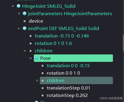 有了机身,就可以在上面创建杆件,一般是直接在solid下创建hingejoint,再去hinge joint下创建新的solid,也可以先创建一个位置坐标转换Pose,再去pose下创建joint,这样看起来会更格式化一些。