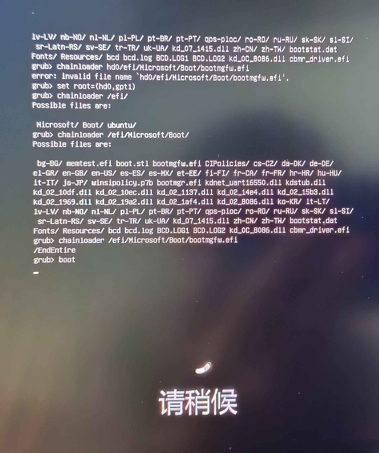如图所示,如果您没有删除Linux的EFI引导,那么您应该连win系统都启动不了,而会进入类似于下图所示的grub命令行界面: