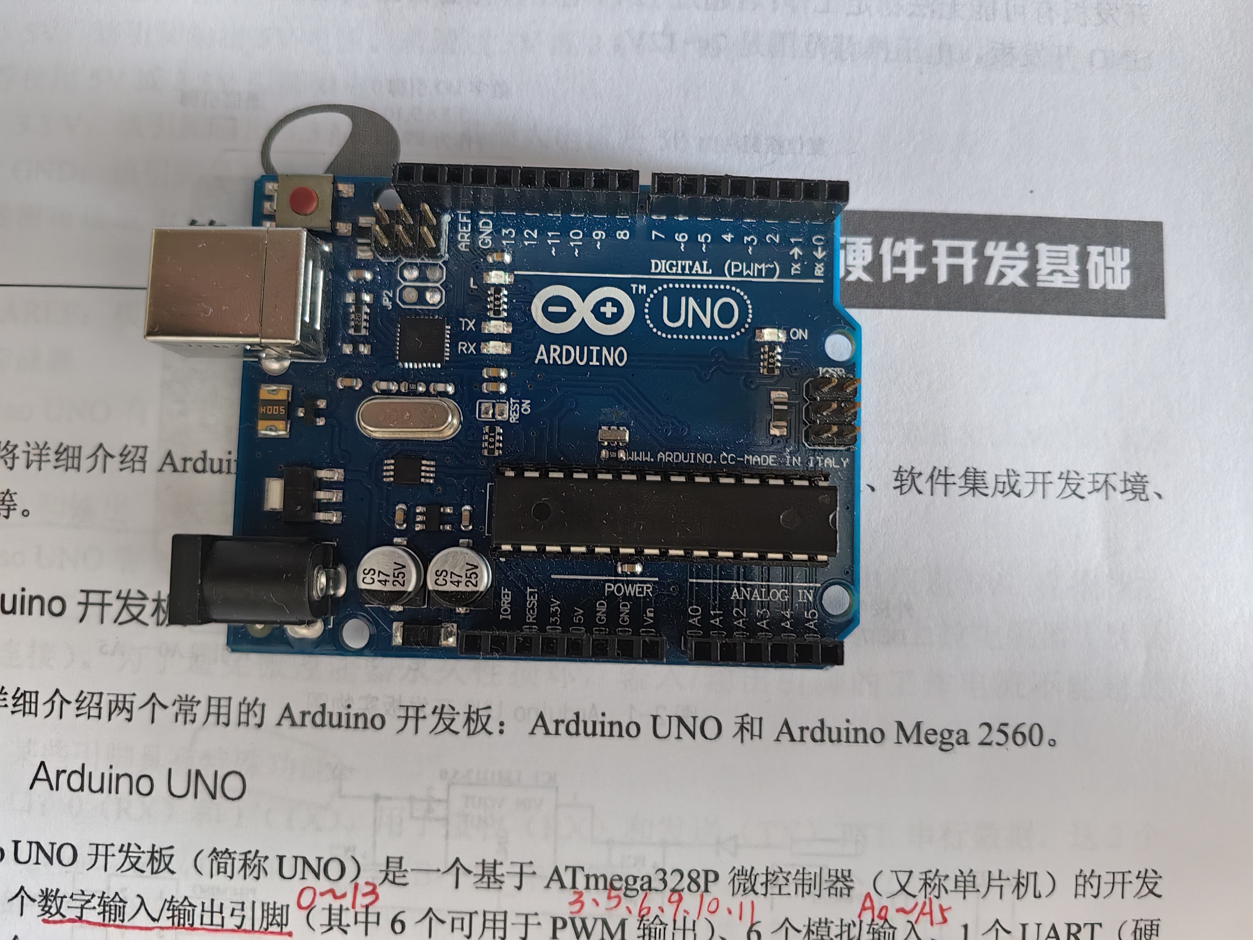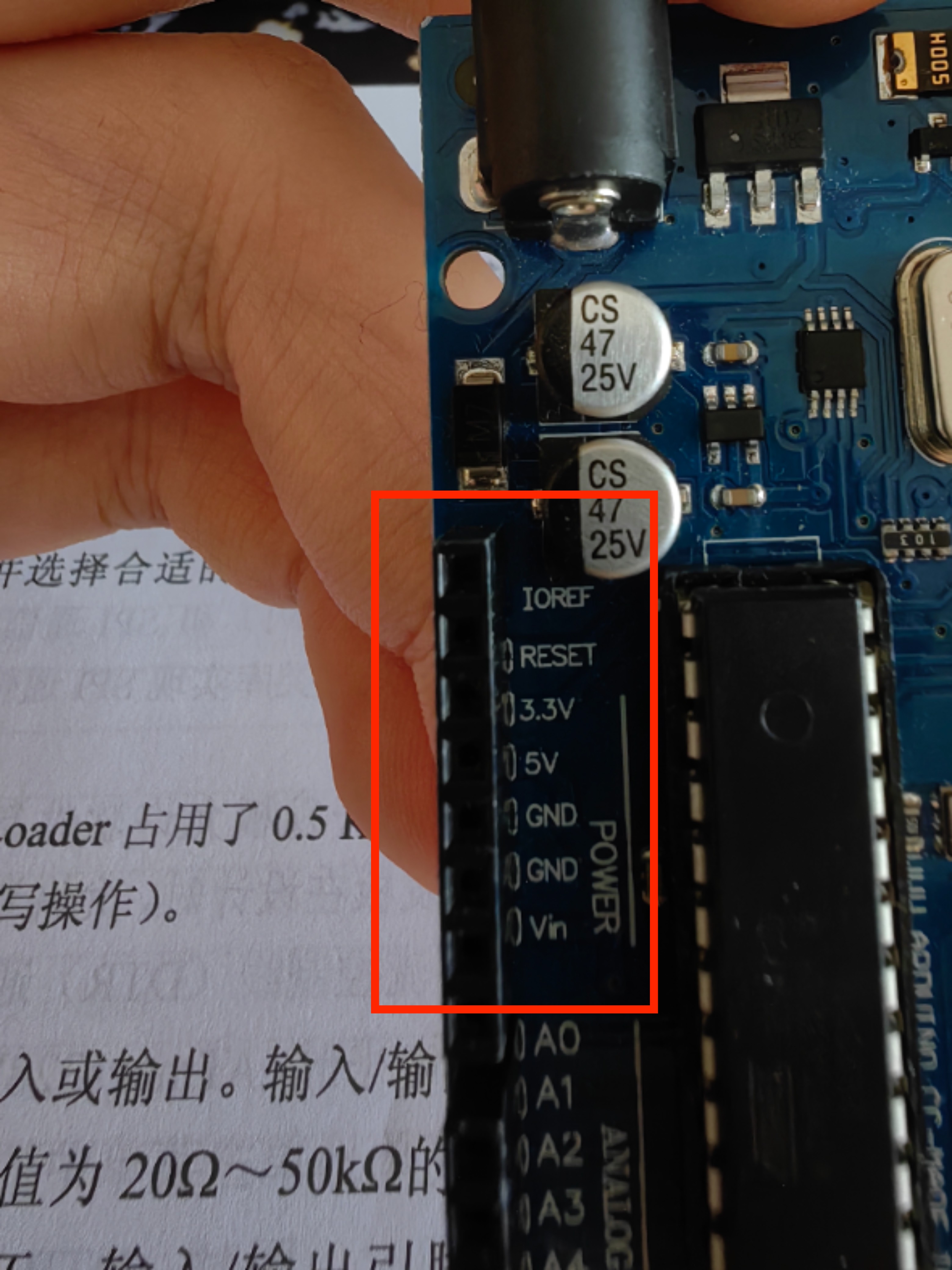 名称作用VIN①外部电流供电时的输入电压引脚 ②电源插座供电时提供5V电压5V输出5V电压 使用该引脚和3.3V引脚可能损坏旁路线性稳压器3V输出3.3V电压GND接地AREF模拟输入的参考电压RESET扩展一个按钮实现复位功能。引脚为低电平输入输出