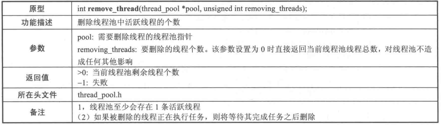 - };// 线程池的管理结构体typedef struct thread_pool{ pthread_mutex_t lock; // 互斥锁, 用于保护任务队列 pthread_cond_t cond; // 条件量, 代表任务队列中任务个数的变化---如果主线程向队列投放任务, 则可以通过条件变量来唤醒哪些睡着了的线程 bool shutdown; // 是否需要销毁线程池, 控制线程退出, 进而销毁整个线程池 struct task *task_list; // 用于存储任务的链表, 任务队列刚开始没有任何任务, 是一个具有头节点的空链队列 pthread_t *tids; // 用于记录线程池中线程的ID unsigned max_waiting_tasks; // 线程池中处于等待状态的任务数量最大值 unsigned waiting_tasks; // 处于等待状态的线程数量 unsigned active_threads; // 正在活跃的线程数量} thread_pool;// 初始化线程池bool init_pool(thread_pool *pool, unsigned int threads_number);// 向线程池中添加任务bool add_task(thread_pool *pool, void *(*do_task)(void *arg), void *task);// 先线程池中添加线程int add_thread(thread_pool *pool, unsigned int additional_threads_number);// 从线程池中删除线程int remove_thread(thread_pool *pool, unsigned int removing_threads_number);// 销毁线程池bool destroy_pool(thread_pool *pool);// 任务函数 线程例程void *routine(void *arg);#endif