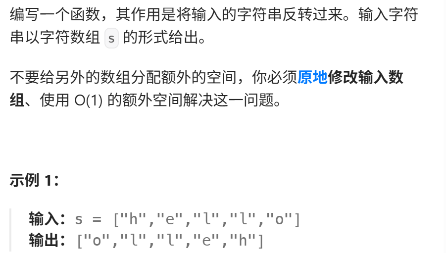 本题要求原地反转字符串,即不使用额外空间修改 char[] s 中的字符顺序。考虑使用双指针法: