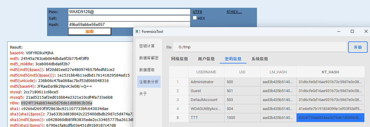 这个哈希比较复杂,但是好像他的逻辑还是通过用户名和密码去数据库查询匹配的用户,所以直接查日志