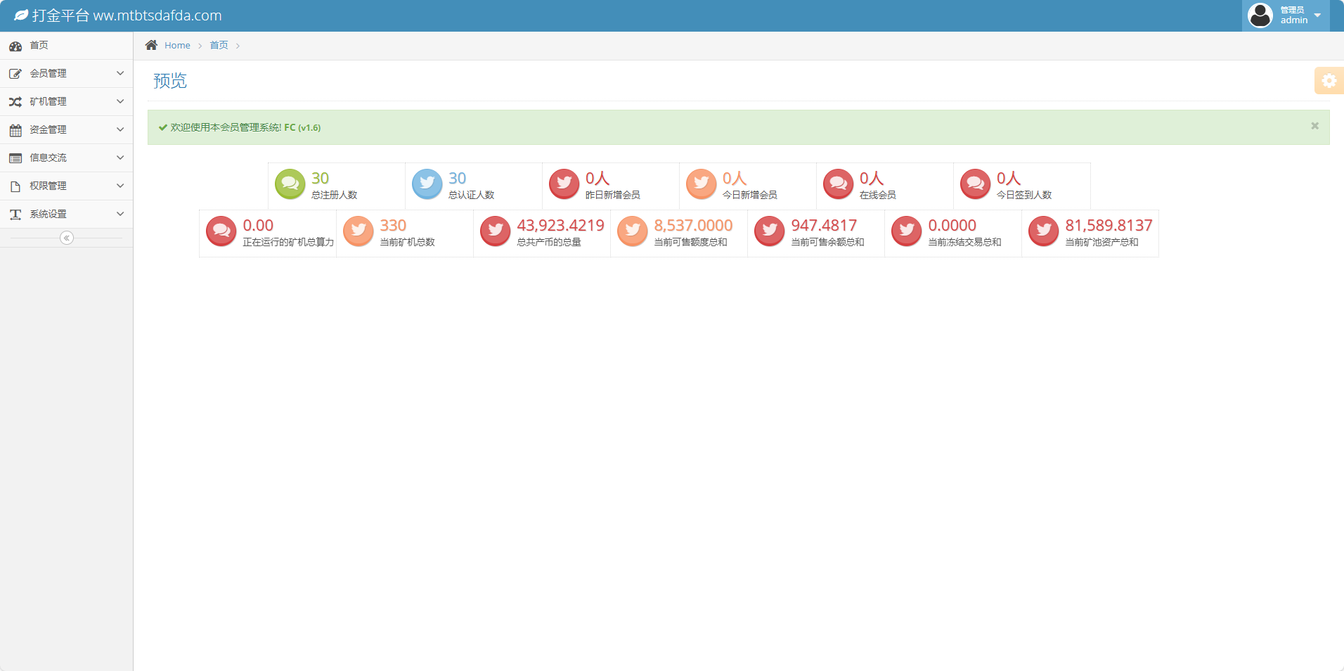 网站上没看到有关数据,数据库查询- select sum(adds) from ds_jinbidetail where `desc`='矿机收益' and member='13067137585';
