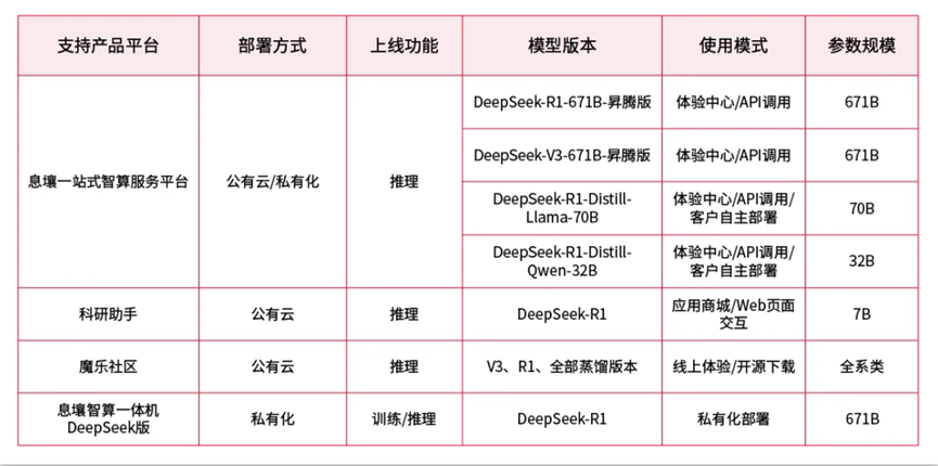 目前“息壤”智算平台已支持部署DeepSeek版的产品: