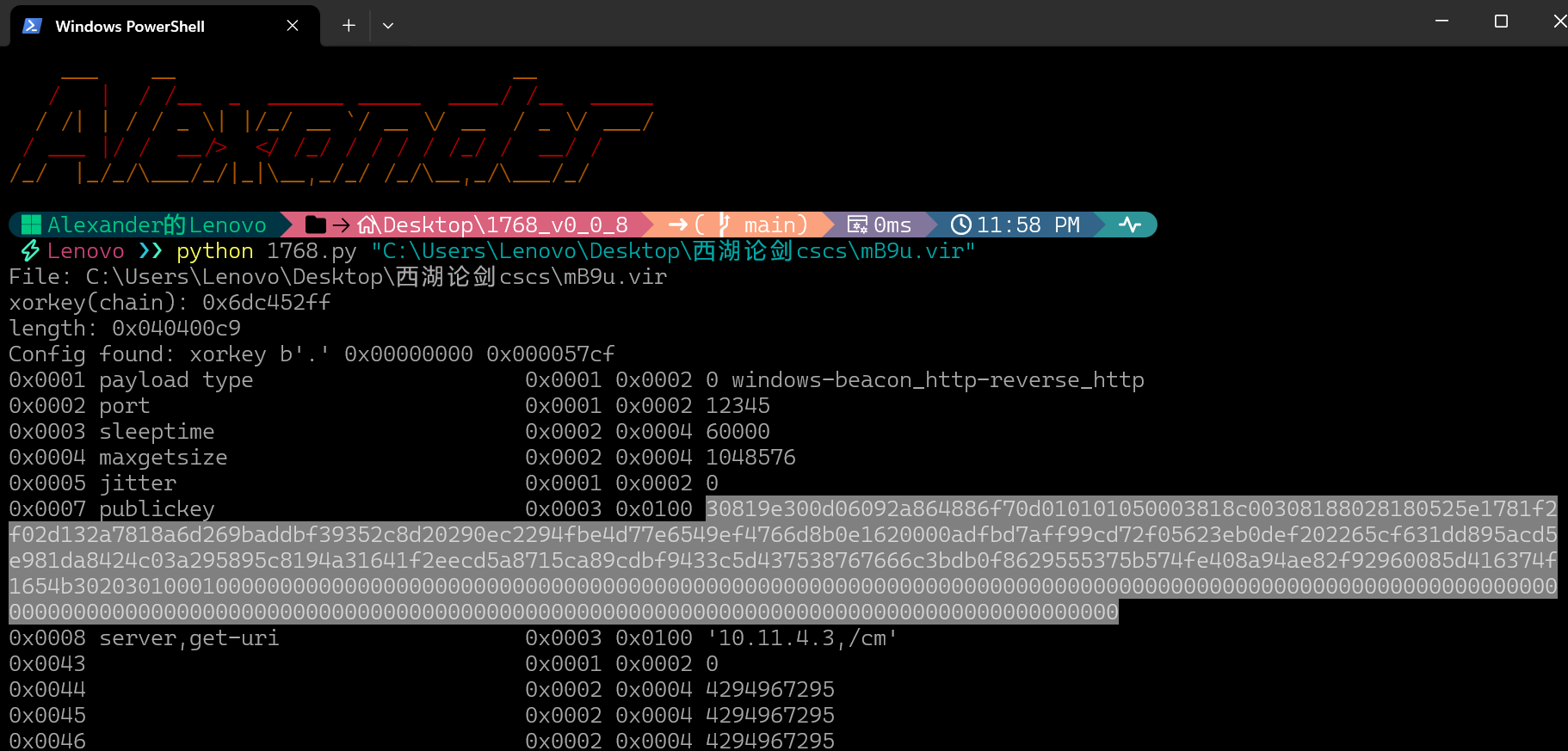导出mB9u文件,后缀改为.vir,这是我们要的beacon,我们需要1768.py去分析,