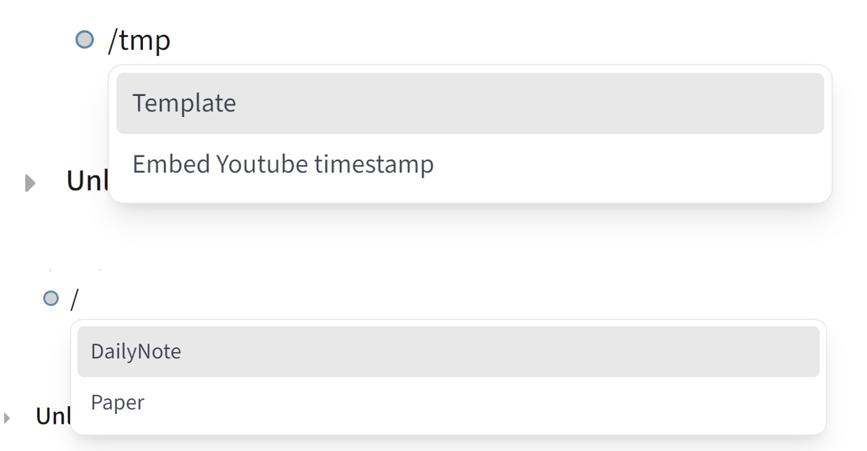 这样每天生成新的日志页的时候,我们只需要输入一个/呼出菜单,输入tmp呼出模板菜单