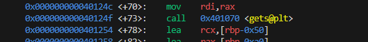 - 1.使用了不安全的函数gets,由于在输入时不会因为变量大小而对输入进行要求,类似scanf,也有缓冲区溢出的问题,gets早就在C11就被弃用了,虽然还可以使用(要先声明,同时会被警告),同时也是因为没有对输入后的变量长度进行检查。