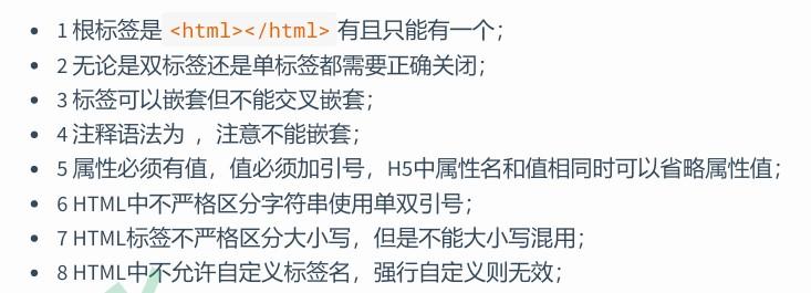 - 2根标签:<html></html>是个文档的根,所有其他都必须在对面。