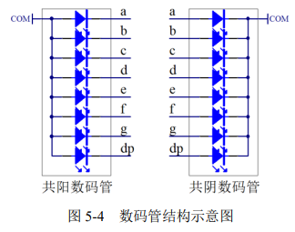 共阳极就是8个LED灯的阳极连接在一起,阳极是公共端,由阴极来控制单个小灯的亮灭