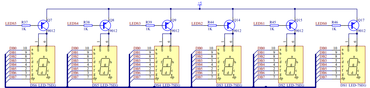 板子上的数码管都是共阳极数码管,数码管的阳极都接在了com端上