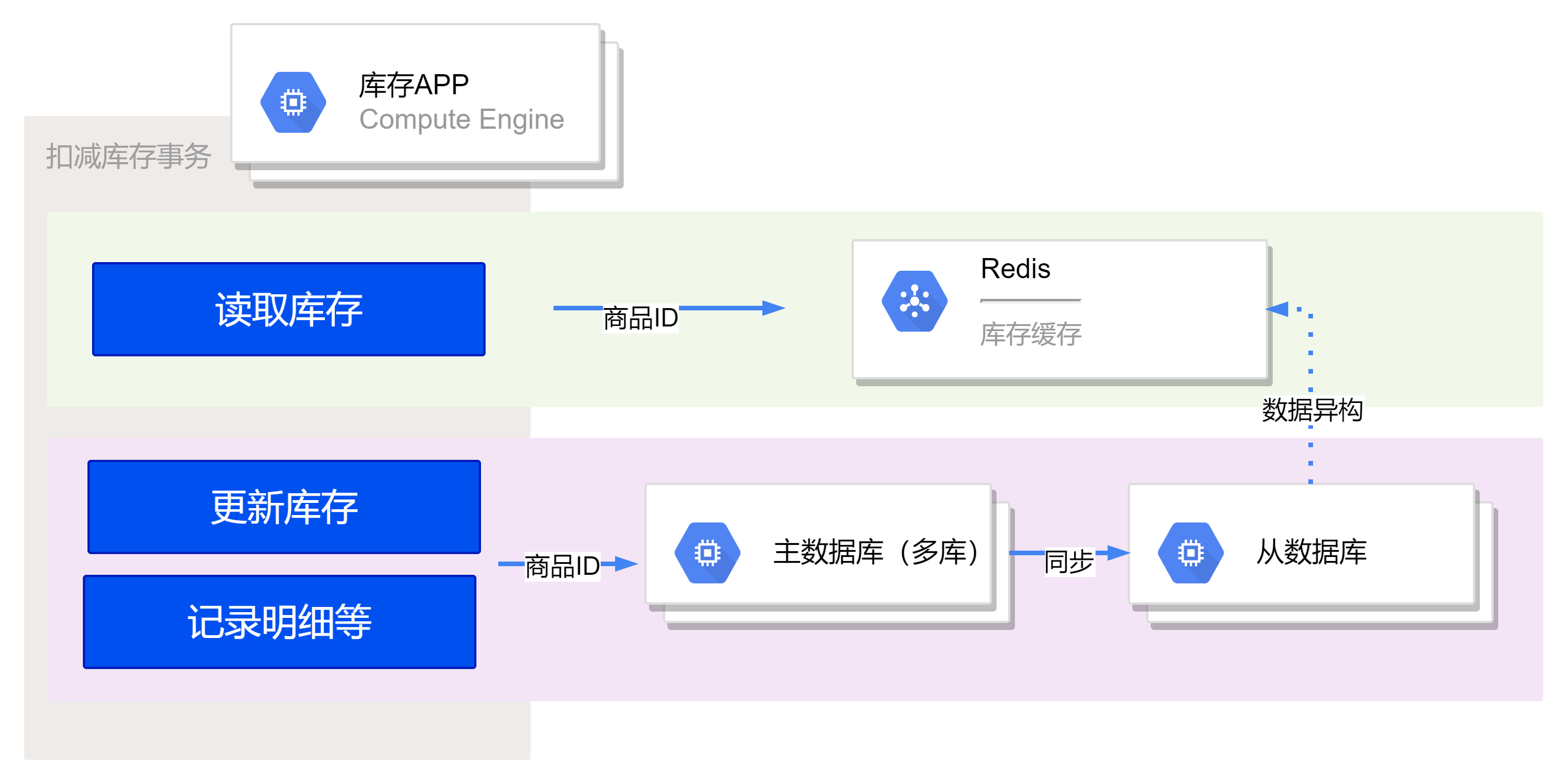 在更大规模,针对单一商品的超高并发扣减的库存集群中,可能基于数据库内核的改造优化还无法满足业务需求。单一商品的超高并发扣减可能会影响到同一数据库实例上的其他商品扣减,同一个数据库实例上也可能存在多个热点商品造成互相影响,这时就考虑引入基于缓存的分桶扣减方案。